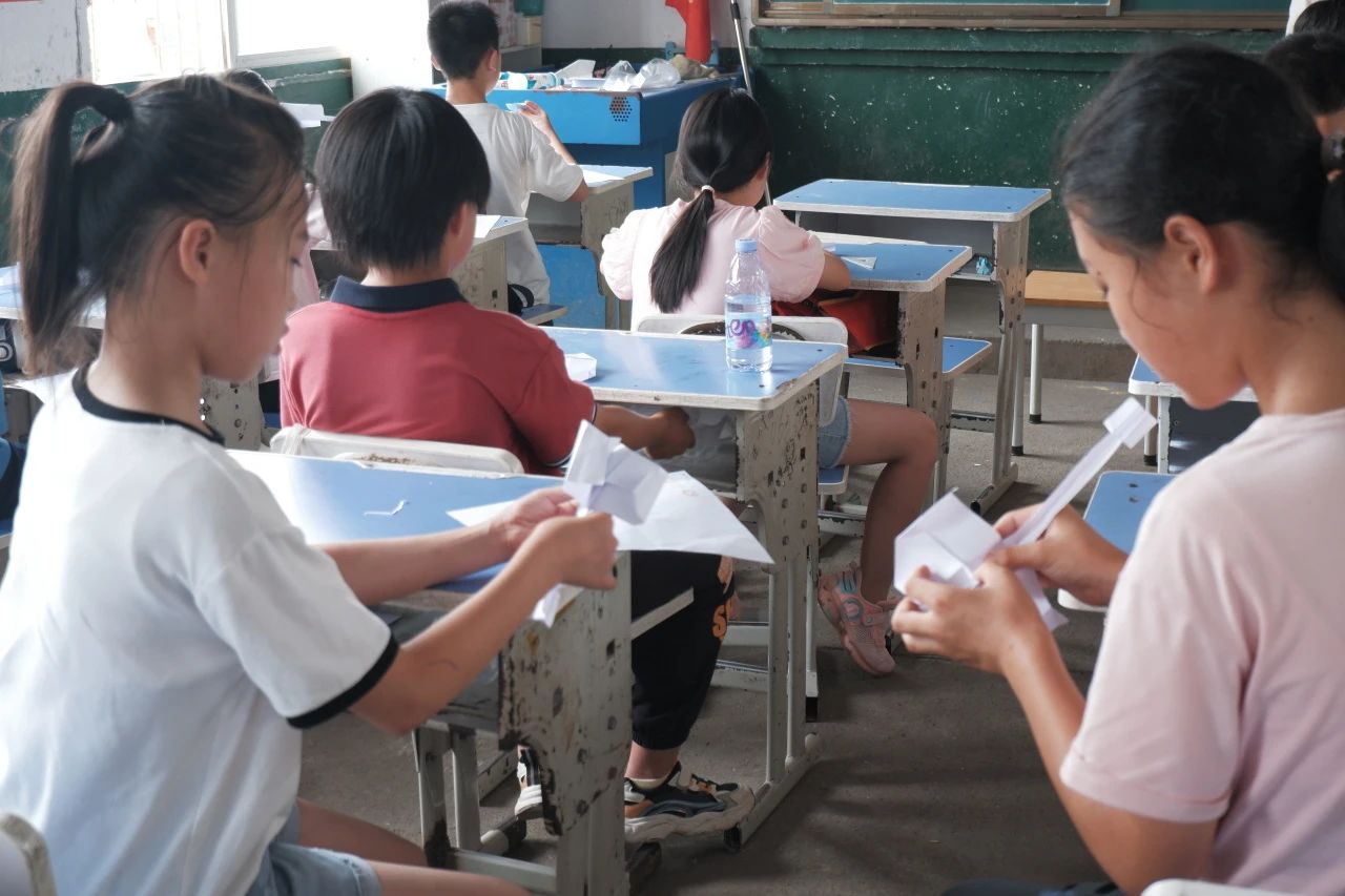 接着,“船船”老师给同学们带来《神奇的纸飞机》,“船船”老师在课堂上给同学们演示DC-03飞机的折纸过程,并介绍了飞机的相关工作原理以及如何科学的折一个纸飞机,同学们跃跃欲试,纷纷动手开始制作自己的纸飞机。在课堂的最后大家互相展示自己的DC-03飞机,并进行“试飞”,气氛活跃。