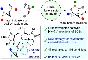 近日,在公司学科团队建设计划支持下,光电材料制备与检测学科团队武文彪博士与湖南大学冯见君教授团队合作以第一作者身份在国际顶级期刊《Nature Communications》(中科院一区,IF = 14.7)发表题为《Enantioselective formal (3 + 3) cycloaddition of bicyclobutanes with nitrones enabled by asymmetric Lewis acid catalysis》的研究论文。