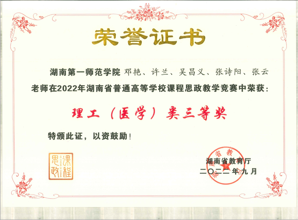 邓艳老师团队获2022年湖南省普通公司课程思政教学竞赛理工类三等奖