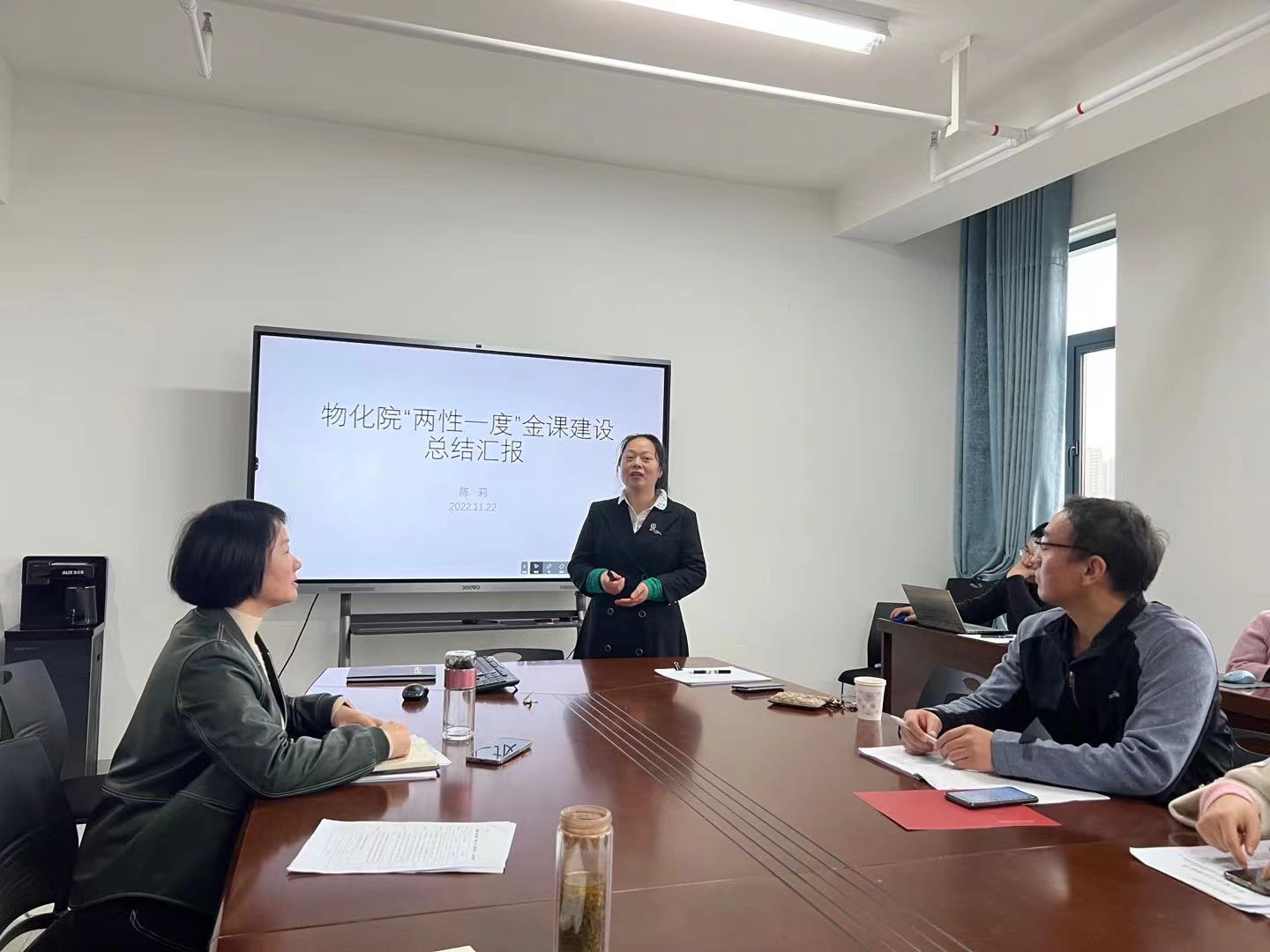 会上,陈志武书记就本院金课评选结果进行了总结,共次11支教学团队或个人进行了金课申报,共推选4门推荐至公司参加校级A类金课评选,3门作为院级B类金课。随后,科学系陈莉老师对本次金课汇报进行了总结。首先介绍了本次金课评选的标准,其次结合本次A类金课从四个方面对课程建设的亮点进行了详细讲解,包含两性一度概念的理解,课程资源建设,课程内容,作业布置。