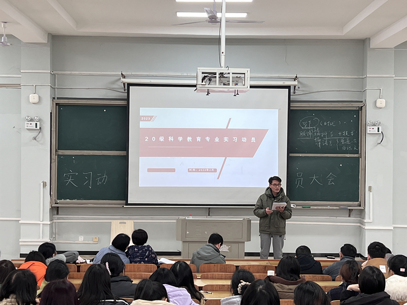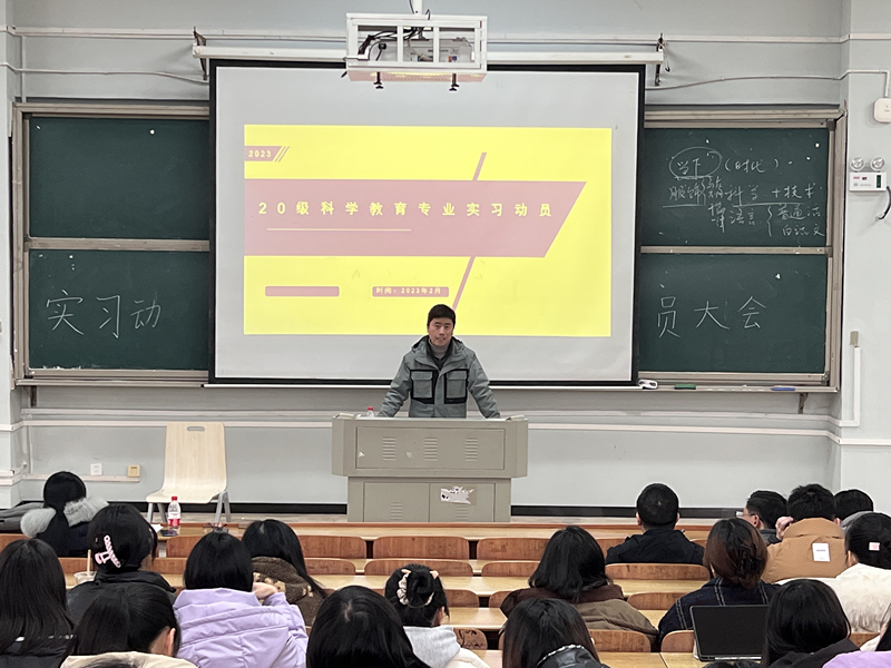 为推进2023年教育实习工作的顺利开展,2月18日中午,伟德体育官方网站院教育实习动员大会在怀中南206举行,经理助理邹立军、科学教育系主任黄文、副主任江华军、实习指导老师和2020级科学教育专业全体员工参加,会议由江华军主持。