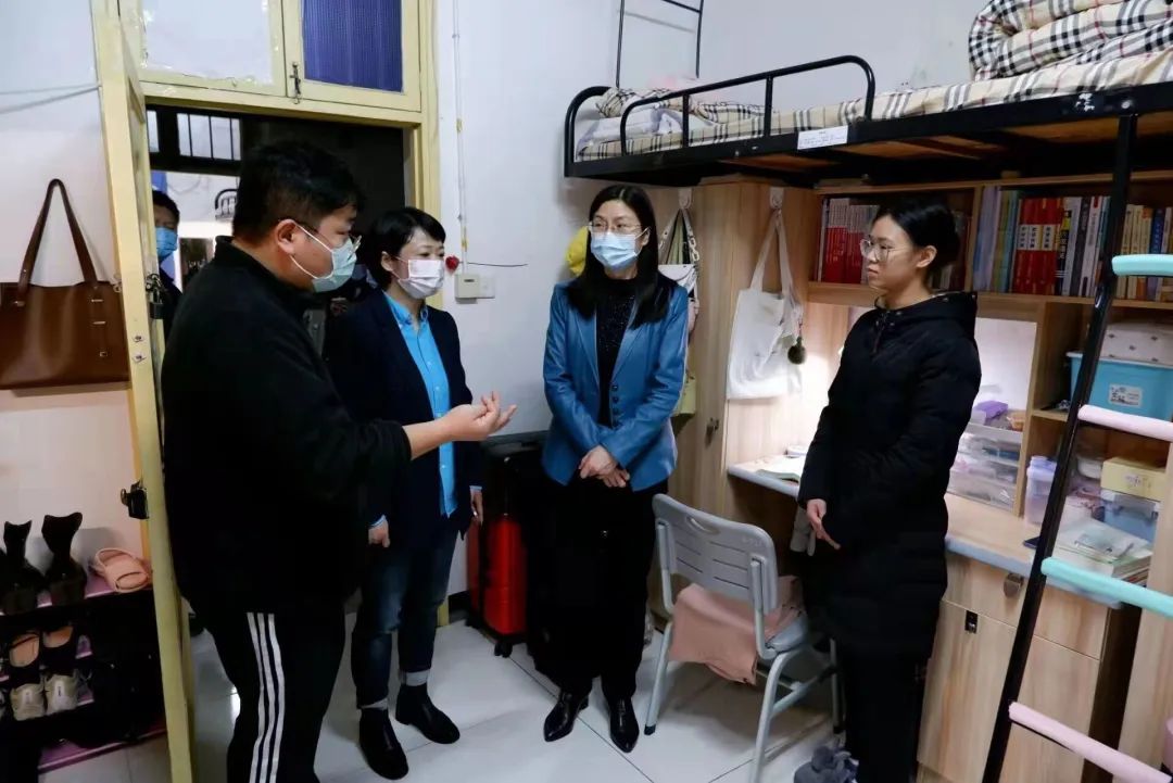 2022年3月30日晚7点,公司党委委员,副董事长蒋蓉、物理与化学公司党委书记陈志武、保卫处副处长伍雁鹏、物化院副经理许兰、学工办主任曾琳娜、教育公司学工办主任刘军、两院辅导员老师一同走访二栋、三栋员工公寓。